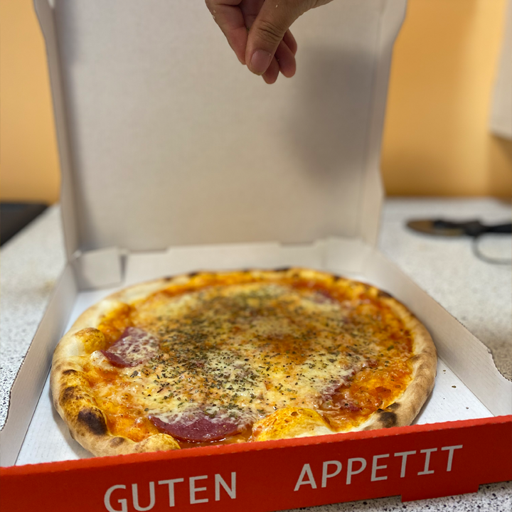 Sehr sehr gute Pizza, die Bedienung sehr freundlich, Rucola und Kirschtomaten sowie Parmaschinken frisch per Hand geschnitten, Pizzaboden sowie Pizza einfach top! Weiter so!