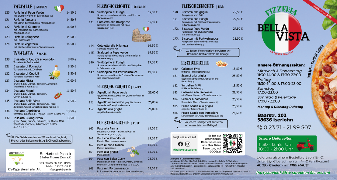 Mit der Idee der Pizzeria BELLA VISTA wollten wir die CUCINA ITALIANA nach Iserlohn holen und das tun wir nun schon seit 2012. Wir wünschen uns, dass unsere Gäste keine Kunden sind, sondern zu Freunden werden, denn Freunde bedient man noch lieber.