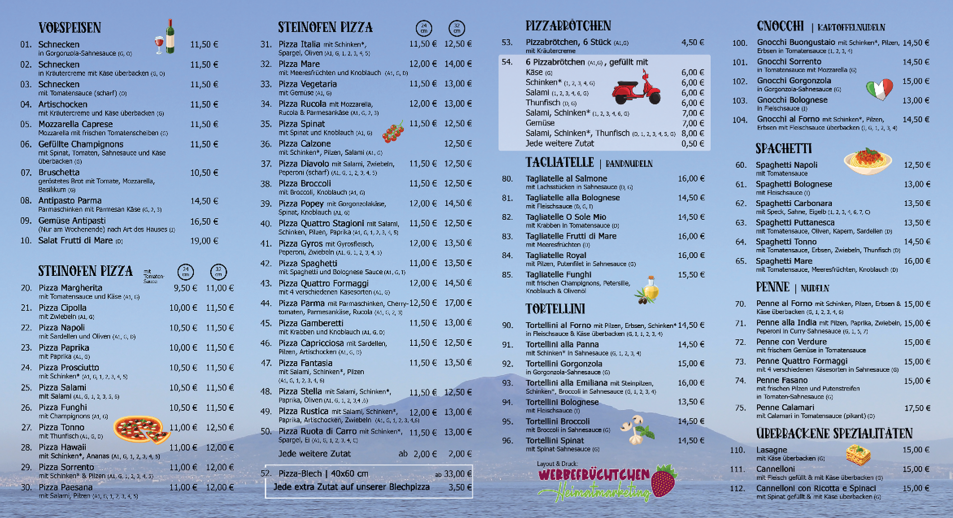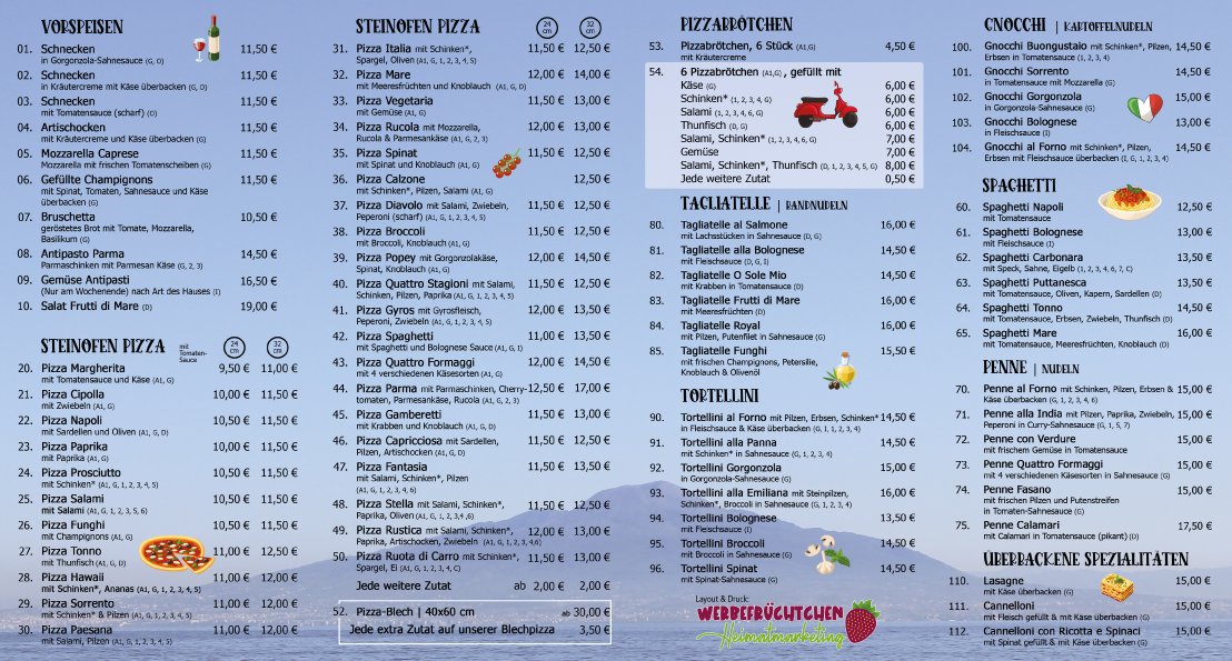 Ihr seid in der Nähe und Euch überkommt der Hunger auf gute, italienische Küche? Dann kommt gerne vorbei und nehmt Eure Wunschbestellung gleich mit nach Hause! Kleine Tipp: Am besten bestellt Ihr vor - dann wartet die Bestellung zum vereinbarten Zeitpunkt abholbereit auf Euch!